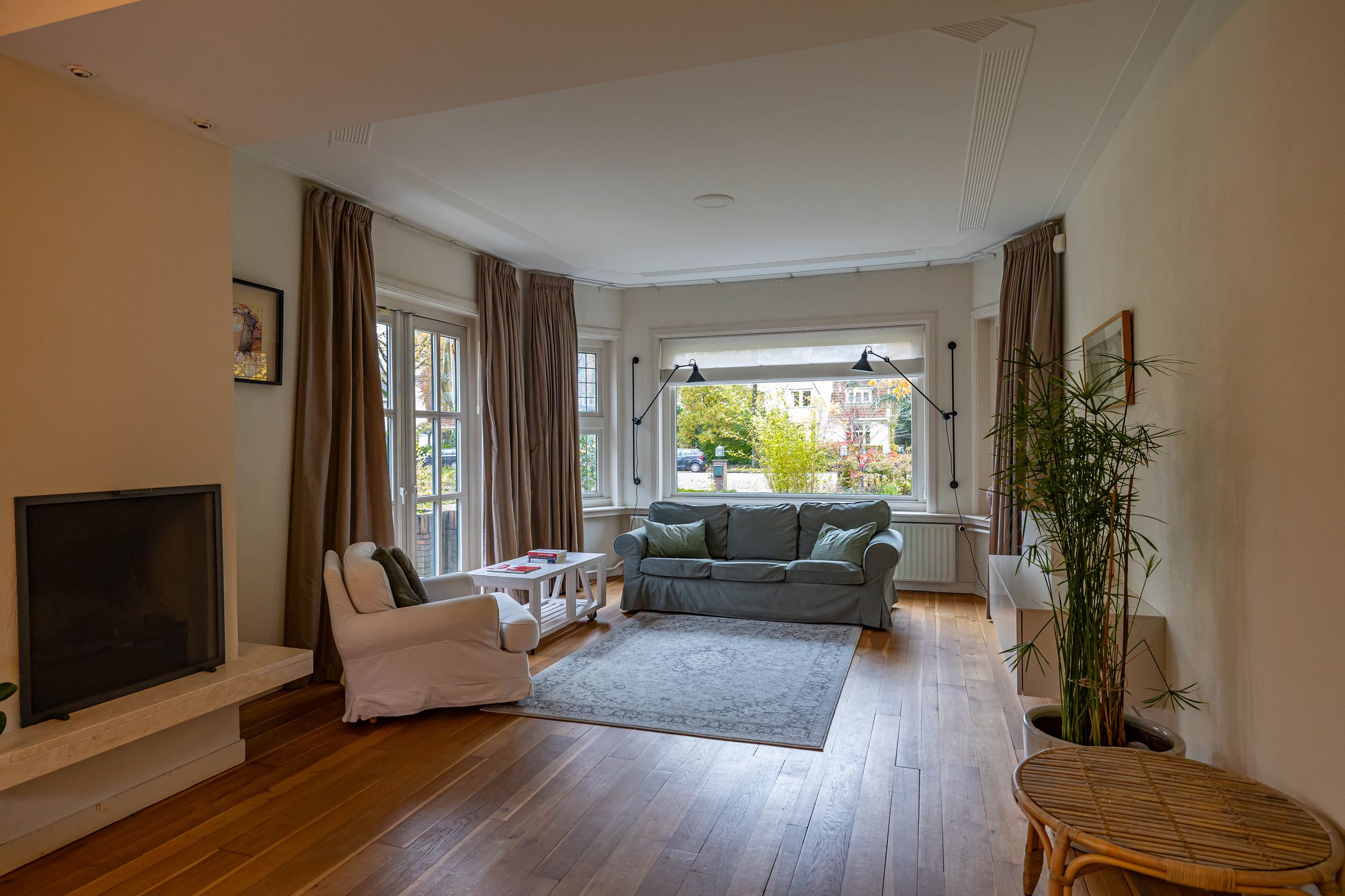De ruime woonkamer van ca. 39 m² is het hart van de woning, met grote raampartijen die de ruimte vullen met natuurlijk licht. De prachtige parketvloer en sfeervolle open haard maken dit de perfecte plek voor zowel gezellige familiebijeenkomsten als rustige avonden.