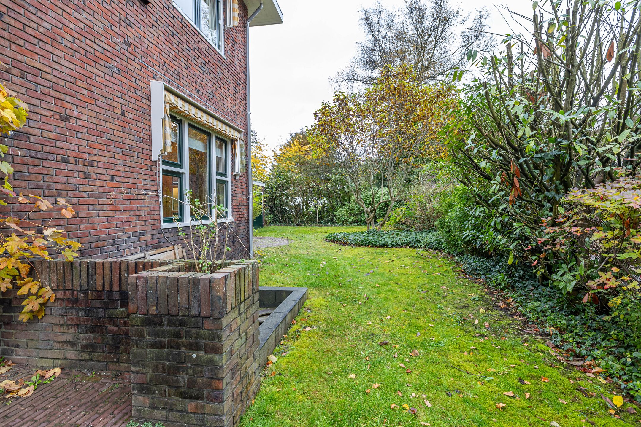 Een klassieke schoonheid: dit authentieke helft-van-een-dubbel woonhuis uit 1933 met zijn robuuste uitstraling en lange oprijlaan.